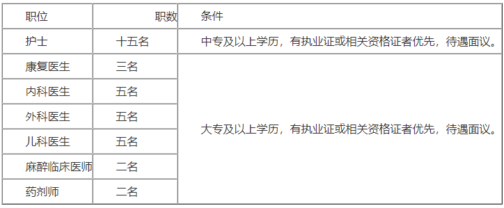 为促进医院更好发展,我院现面向社会招聘,招聘以下职位: