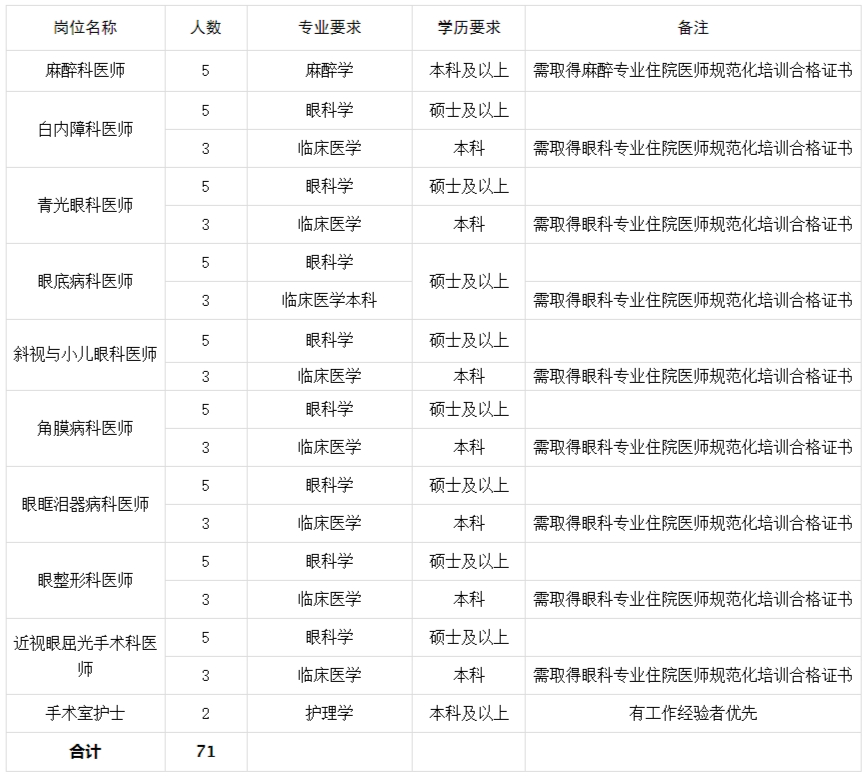 为进一步加强我院人才队伍建设,促进医院高质量发展,根据医院发展规划,现面向社会公开招聘各类优秀人才71名,有关事宜公告如下: